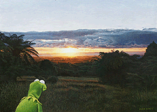 Superman and the Katikara Stream Kermit and Taranaki Sunset Wonderwoman and the Pouakai Ranges