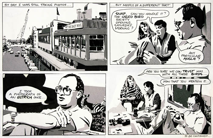 Snap Harris 4 Graham Kirk Snap Harris episodes; signed, open edition inkjet prints on archival matte paper, A3 - 329 x 483 mm Available for $50 from the artist's studio, phone NZ 06 752 4479 email Graham at grahamdavidkirk@gmail.com