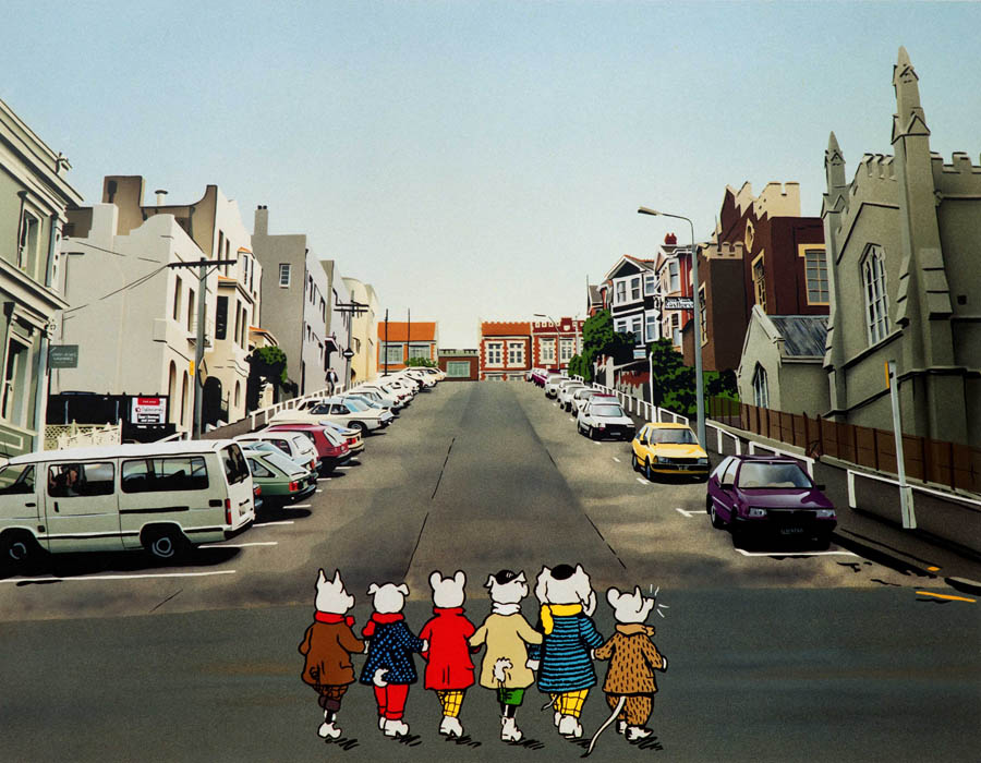 Rupert and friends in View Street, Dunedin