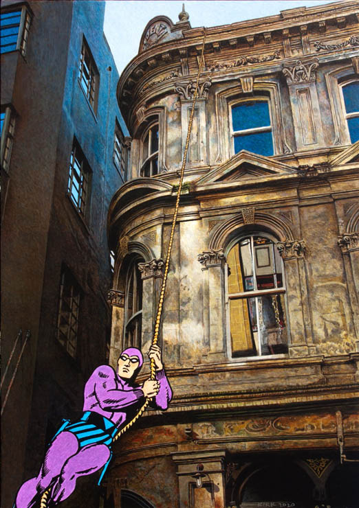 The Phantom in Vulcan Lane. from a painting by Graham Kirk, 2020 Prints are signed, unlimited edition, in archival inkjet inks on cotton rag 300gsm velvet fine art paper, size A2 or A3 email Graham at grahamdavidkirk@gmail.com